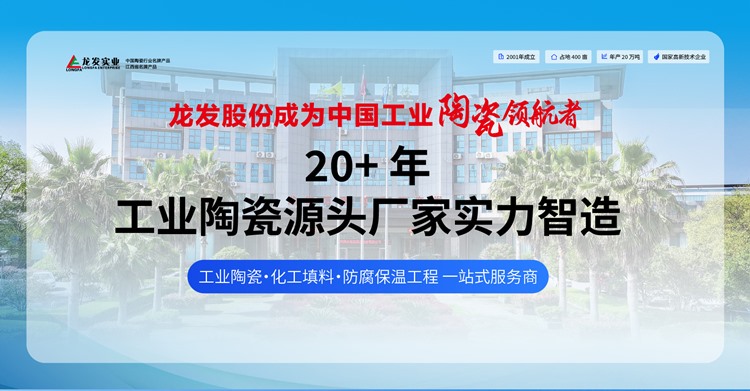江西萍乡龙发实业股份有限公司创建于2001年,注册资金1.06亿元,占地面积400亩,是“江西省萍乡市工业陶瓷行业商会”会长单位。经过近二十年的持续健康发展,公司已成为集工业陶瓷生产、防腐保温工程施工、环保设备制作与安装于一体的大型股份制企...